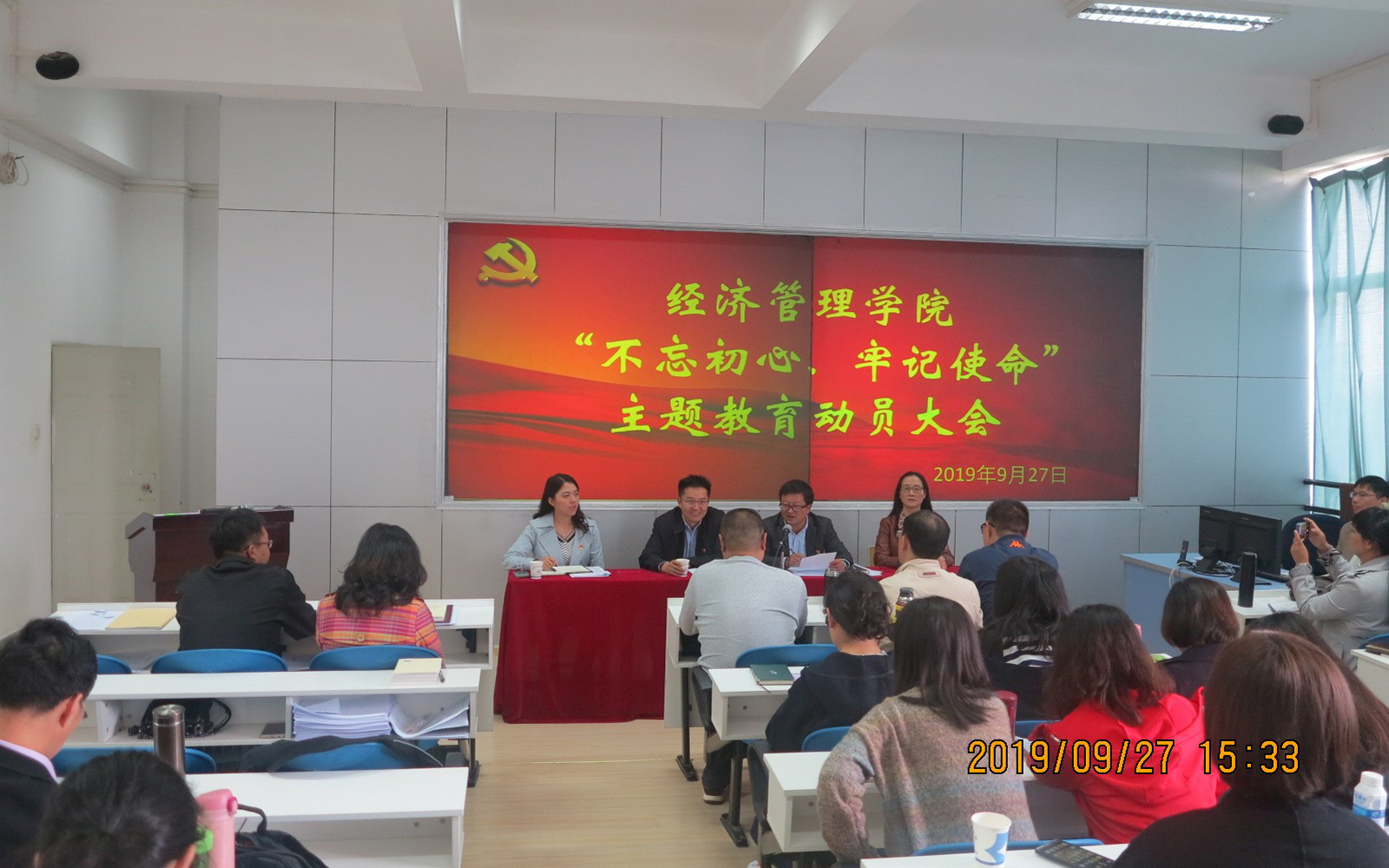 按照中央、省委不忘初心、牢记使命主题教育的部署要求,根据公司党委的安排,2019927日下午,金年会金字招牌诚信至上公司党委在惟行楼1301房地产实验室召开全体师生党员不忘初心、牢记使命主题教育动员大会。公司党委书记樊传章同志主持会议,公司党委第五指导组施磊同志、喻玲同志参会进行了动员大会的指导。