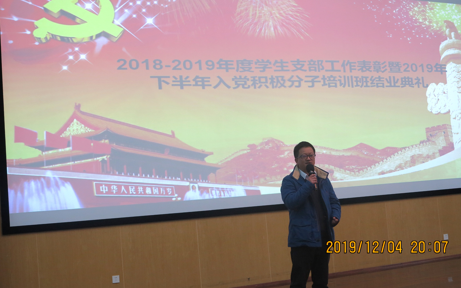 2019年12月4日晚,金年会官方网站入口“忆初心,当先锋,跟党走”2019年秋季入党积极分子培训班结业典礼在惟行楼1501隆重举行。公司党委书记樊传章、正处级组织员方永昆、组织员杨靖伟、组织员姚月梅、财务管理专业员工第二党支部书记李春雪等老师出席,金年会官方网站入口员工党员、预备党员、2019年秋季入党积极分子参加了此次结业典礼。