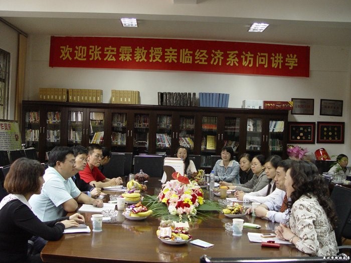 6月23上午,美国哈佛大学博士后、美国科罗拉多大学经济学博士,美国伊利诺伊州立大学经济系终身教授,张宏霖教授亲临金年会金字招牌诚信至上经济公司访问讲学。经济公司经理博斌教授、党总支书记李跃波教授、副经理沈艳萍教授在公司资料室会见了张教授。随后,张教授与公司领导班子、骨干教师代表进行了交流座谈。座谈中,博斌教授对张教授的来访表示热烈欢迎,并向张教授介绍了我系的发展历程以及专业特色。张教授对美国的高等教育情况向与会的教师进行了介绍。参会的教师针对专业课程设置中遇到的和张教授进行了交流探讨,张教授也就老师们提出的问题提出了建设性的建议。