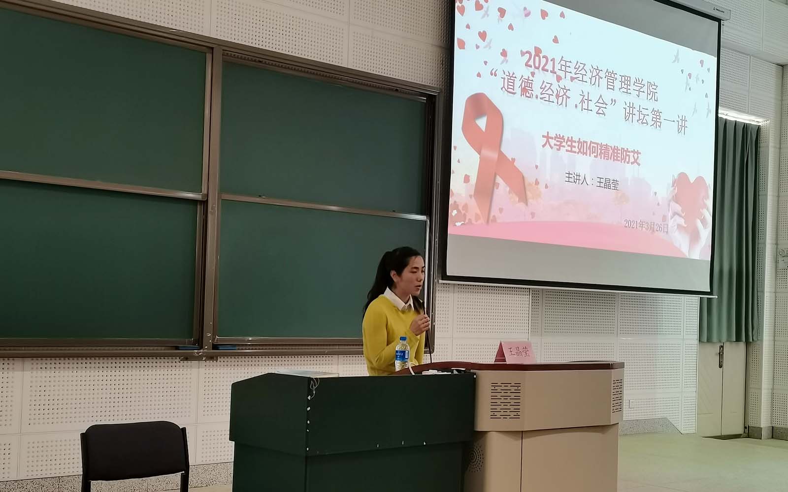 为普及艾滋病防治知识,增强公司2020级新生艾滋病防控的自我保护意识,3月26日,金年会官方网站入口“道德·经济·社会”系列讲坛2021年第一讲——《老员工如何精准防艾》在博雅楼2101教室如期开讲,本次讲座邀请到昆明市疾控中心性病艾滋病防治科主管医师王晶莹主讲,公司党委副书记鲍鲲老师主持讲座,公司2020级近300名同学参与此次讲座。