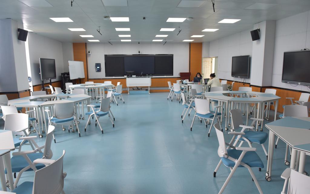 1301智慧教室建于2021年9月,汇聚先进科技、具备国际化现代化的教学环境,旨在打造一个互动、智能且高效的教学空间,可容纳48人6个研讨小组。教室配备了先进的多...